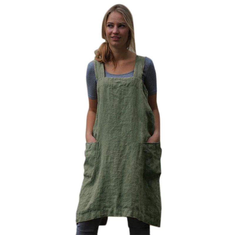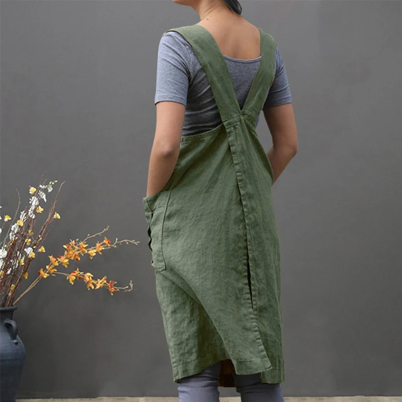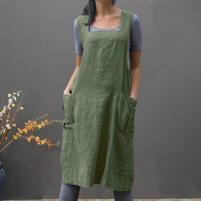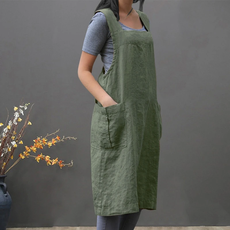 New Vintage Overalls Dress For Women Pocket Apron Cross Strap Dress Cotton Casual Loose Sleeveless Sund