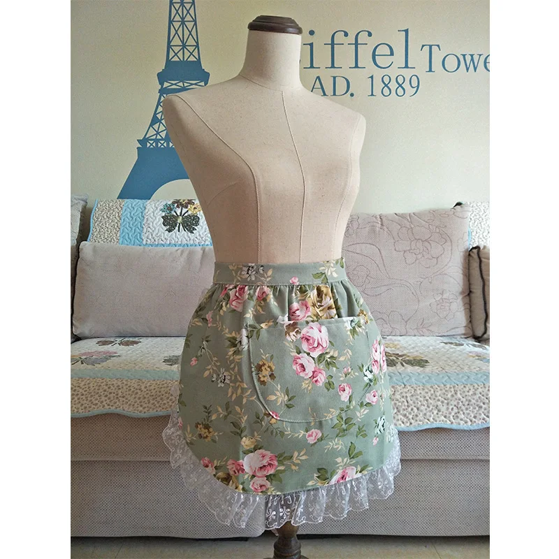 New Green Floral Half Waist Bistro Restaurant Lace Ruffle Women Kitchen Avental de Cozinha Divertido Ta