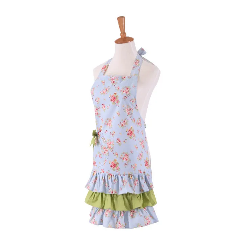 Best 1Pcs Pink Flower Blue Green Apron Woman Adult Bibs Home Cooking Baking Coffee Shop Cleaning Aprons