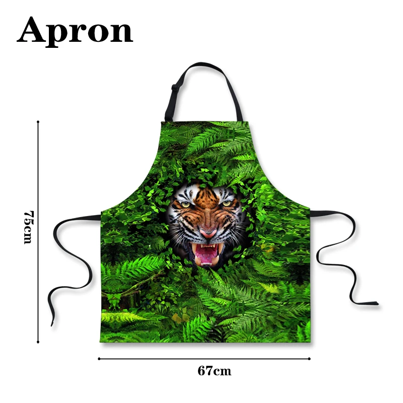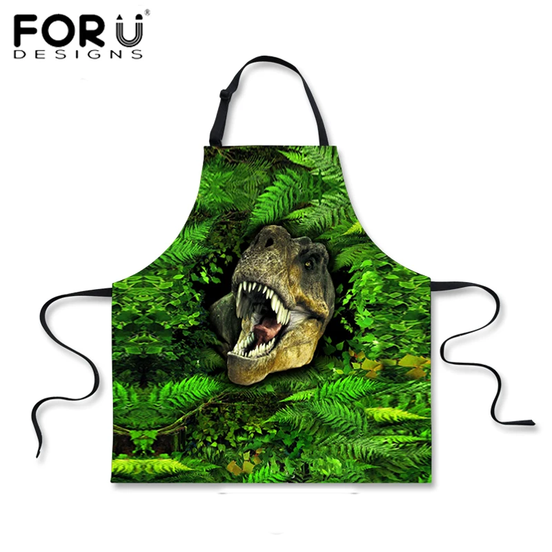 Promo FORUDESIGNS 3D Dinosaur Tiger Jurassic Park Kitchen Apron for Woman Men Chef Green Apron for Cookin