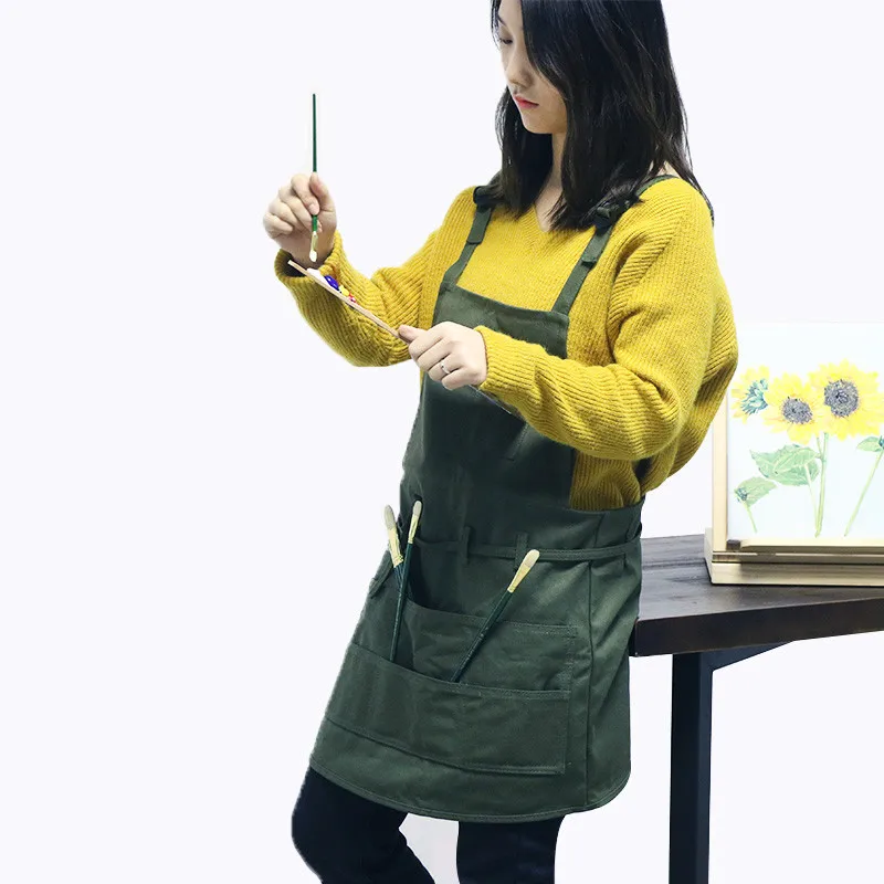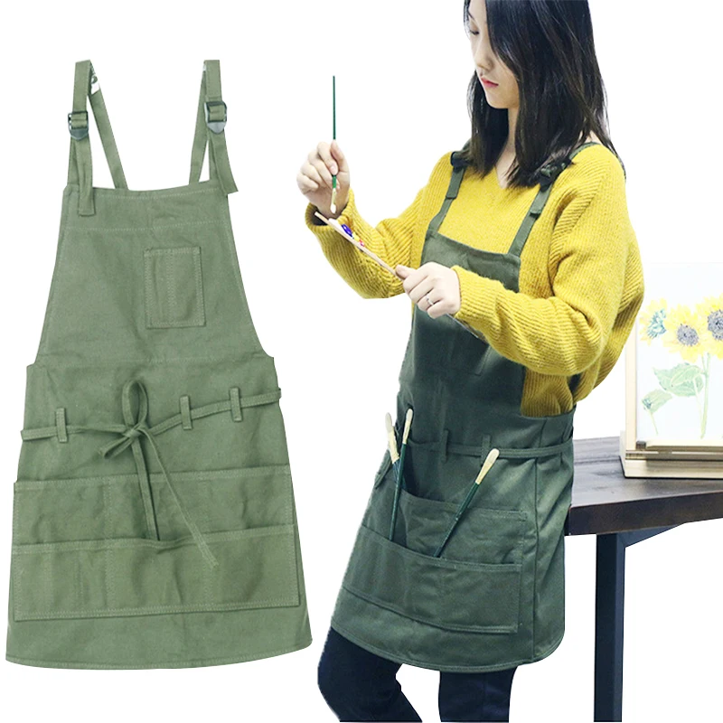 Promo 1 pcs Army Green Painting Apron Ladies Latest Cooking Pocket Canvas Apron Artist Sleeveless Oil Pai