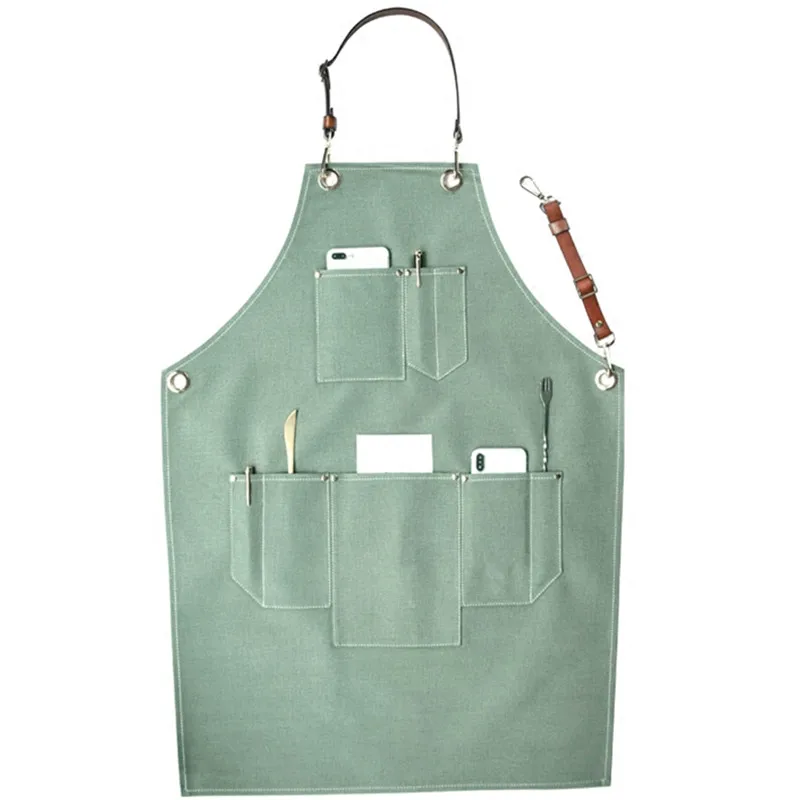 Best Green Canvas Apron Leather Strap Barista Bartender Baker Chef Waitstaff Uniform Hairdresser Barber